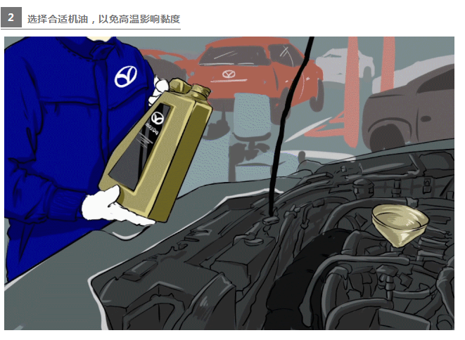 長安馬自達(dá)創(chuàng)馳藍(lán)天發(fā)動機(jī)SKYACTIV-G具有13:1的高壓縮比,大幅提升發(fā)動機(jī)的工作效率并改善油耗,實(shí)現(xiàn)卓越的環(huán)保與操控性能,表現(xiàn)遠(yuǎn)超同級別車型發(fā)動機(jī)。但是,精密的機(jī)械部件需要充分潤滑。就像人體在運(yùn)動前,需要充分的熱身,讓關(guān)節(jié)與韌帶間充滿潤滑液,防止關(guān)節(jié)磨損與老化。由于夏季溫度高,機(jī)油黏度受影響,容易變“稀”, 請選擇規(guī)格合適的高質(zhì)量全合成機(jī)油。長安馬自達(dá)服務(wù)顧問會結(jié)合車型給車主建議。