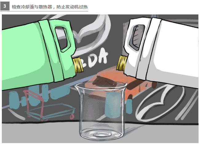 冷卻液又稱防凍液,和純凈水相比,冰點(diǎn)低,沸點(diǎn)高,不但在冬季低溫有防結(jié)冰的功能,而且在夏季高溫天氣,還可避免水溫過高時沸騰“開鍋”。因此,夏季應(yīng)及時檢查液位,不足時及時補(bǔ)充規(guī)格相同的正品冷卻液,因?yàn)椴煌?guī)格或品牌的冷卻液混合后,可能發(fā)生化學(xué)反應(yīng),產(chǎn)生沉淀物,堵塞冷卻系統(tǒng)管路。另外,查看水箱表面是否有樹葉、昆蟲、塵土等雜物覆蓋,及時清洗,可提高發(fā)動機(jī)散熱能力,確保強(qiáng)勁的SKYACTIV–G創(chuàng)馳藍(lán)天汽油發(fā)動機(jī)在酷暑中清涼順暢運(yùn)行。